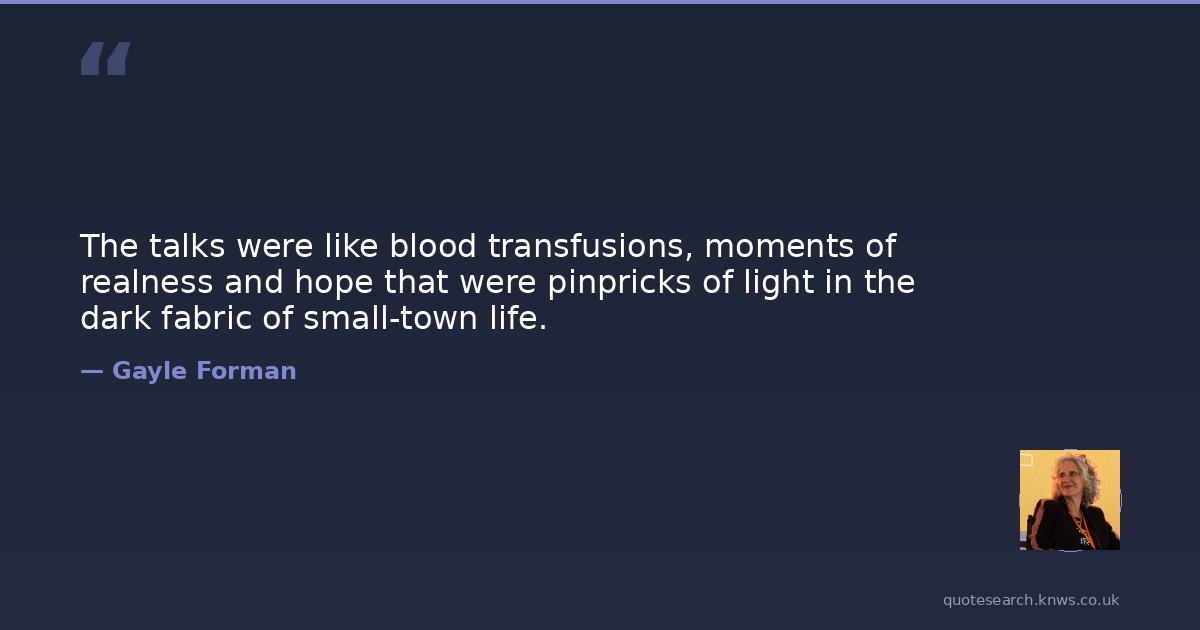 The talks were like blood transfusions, moments of realness and hope that were pinpricks of light in the dark fabric of small-town life.