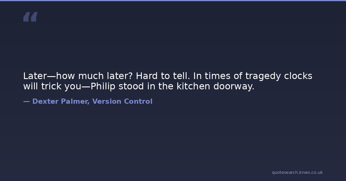 Later—how much later? Hard to tell. In times of tragedy clocks will trick you—Philip stood in the kitchen doorway.