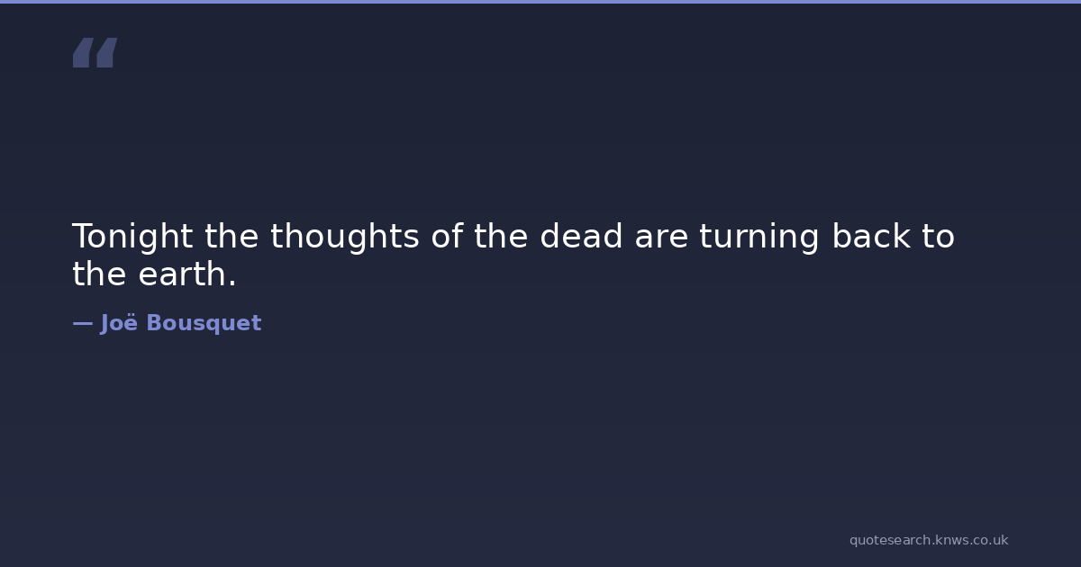 Tonight the thoughts of the dead are turning back to the earth. dead Download Image Share on X Share on Facebook Copy Link