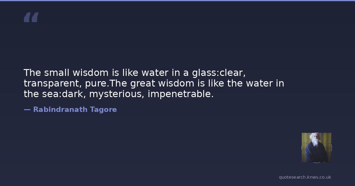 The small wisdom is like water in a glass:clear, transparent, pure.The great wisdom is like the water in the sea:dark, mysterious, impenetrable.