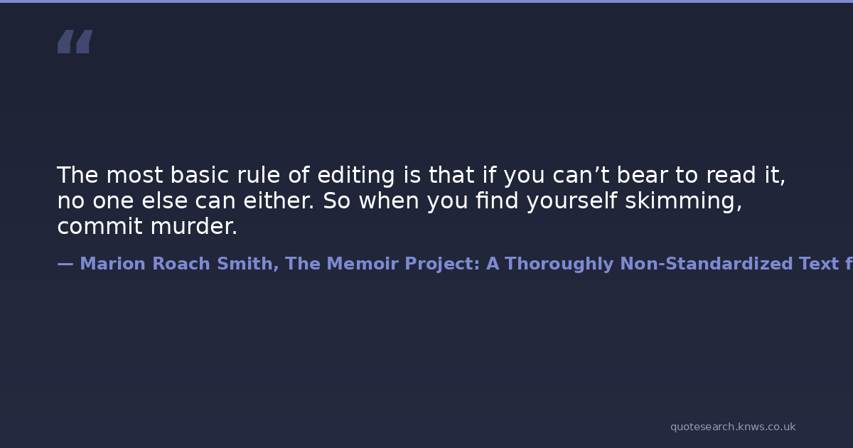 The most basic rule of editing is that if you can’t bear to read it, no one else can either. So when you find yourself skimming, commit murder.