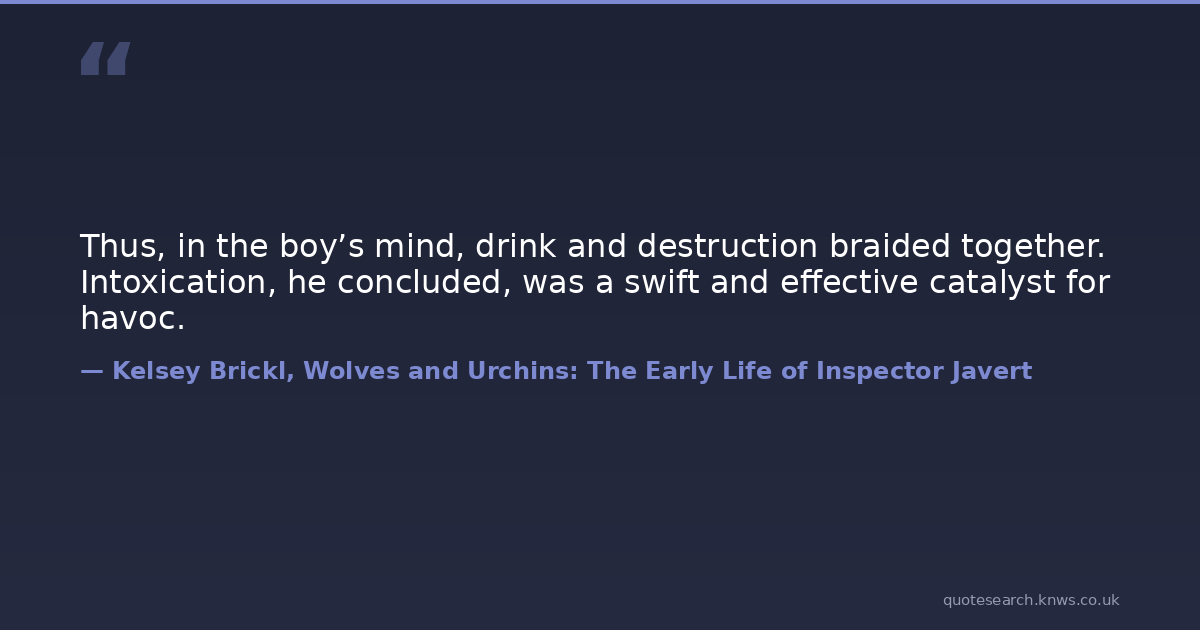 Thus, in the boy’s mind, drink and destruction braided together. Intoxication, he concluded, was a swift and effective catalyst for havoc.