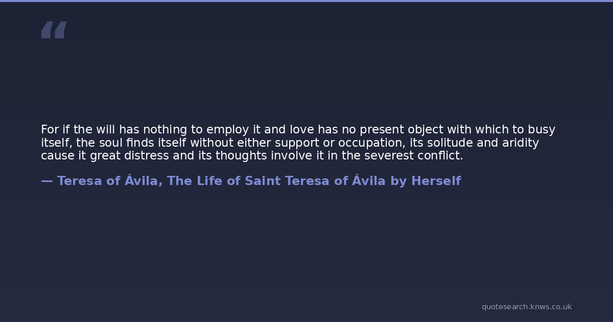 For if the will has nothing to employ it and love has no present object with which to busy itself, the soul finds itself without either support or occupation, its solitude and aridity cause it great distress and its thoughts involve it in the severest conflict.