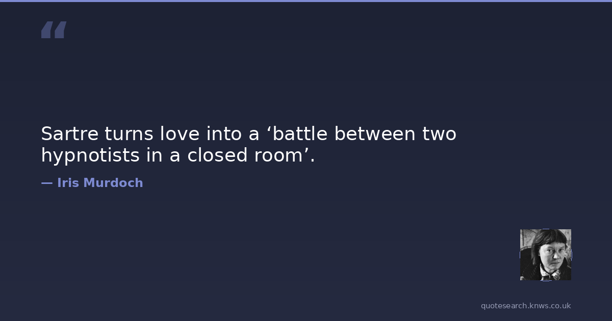 Sartre turns love into a ‘battle between two hypnotists in a closed room’.