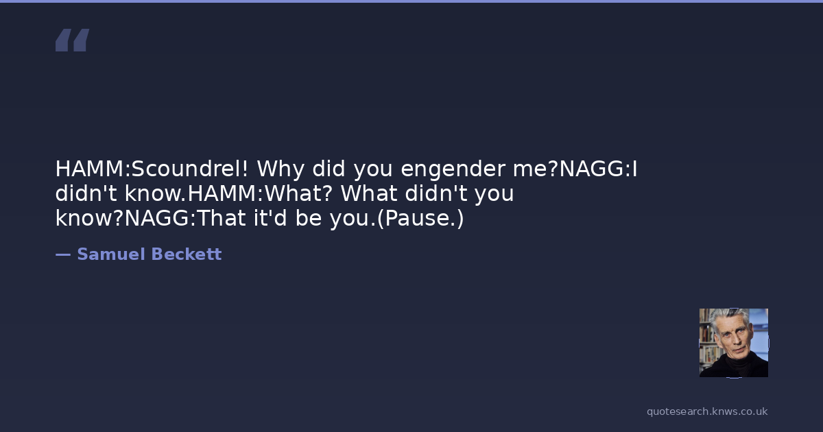 HAMM:Scoundrel! Why did you engender me?NAGG:I didn't know.HAMM:What? What didn't you know?NAGG:That it'd be you.(Pause.)