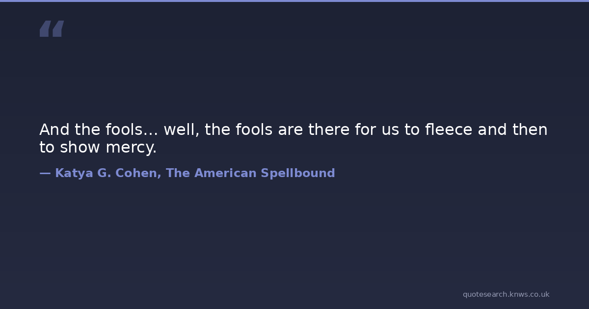 And the fools… well, the fools are there for us to fleece and then to show mercy. fools mercy Download Image Share on X Share on Facebook Copy Link
