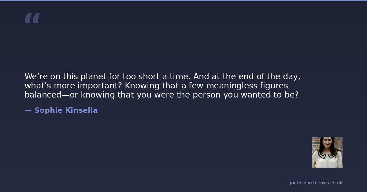 We’re on this planet for too short a time. And at the end of the day, what’s more important? Knowing that a few meaningless figures balanced—or knowing that you were the person you wanted to be?