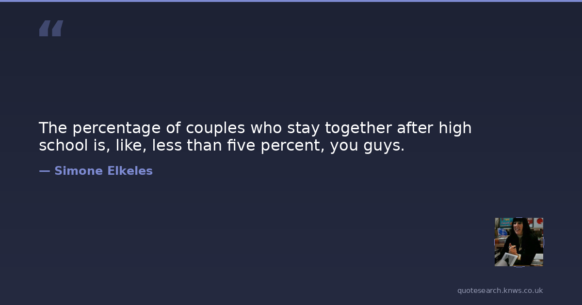 The percentage of couples who stay together after high school is, like, less than five percent, you guys.