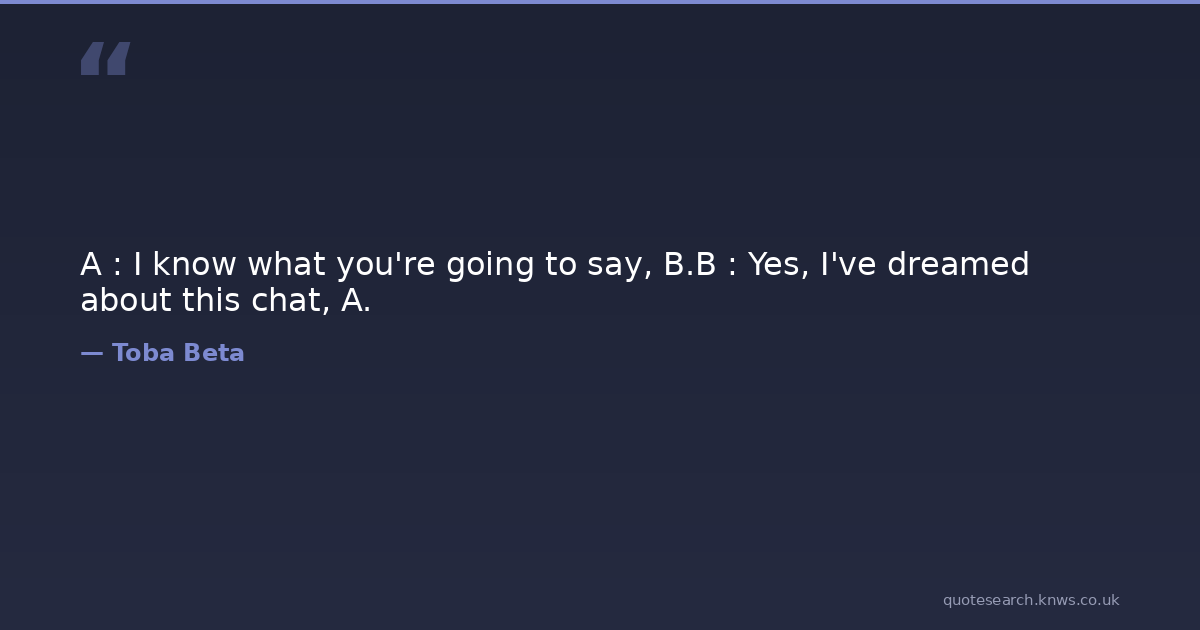 A : I know what you're going to say, B.B : Yes, I've dreamed about this chat, A. logic Download Image Share on X Share on Facebook Copy Link