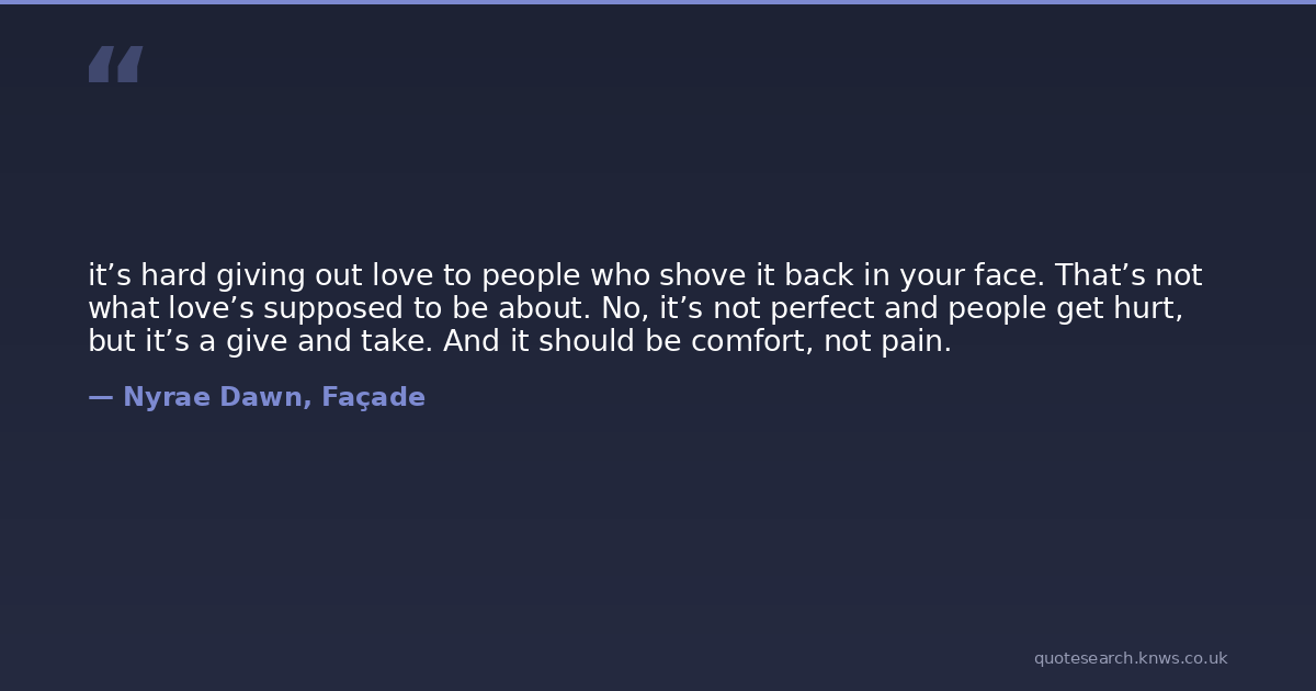 it’s hard giving out love to people who shove it back in your face. That’s not what love’s supposed to be about. No, it’s not perfect and people get hurt, but it’s a give and take. And it should be comfort, not pain.
