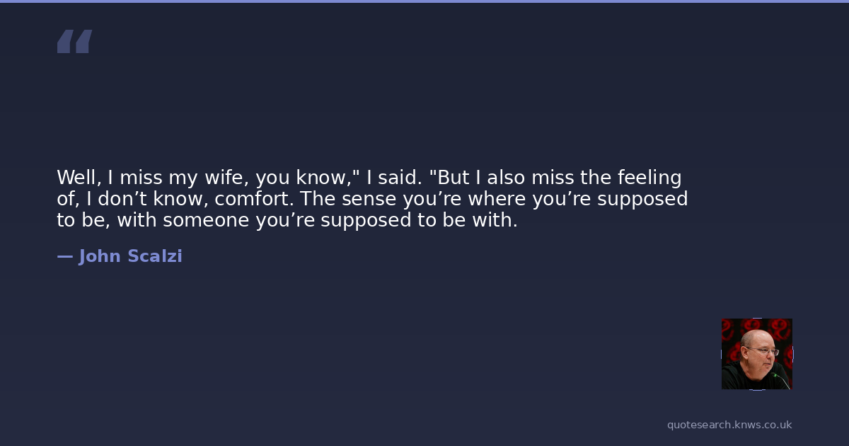 Well, I miss my wife, you know," I said. "But I also miss the feeling of, I don’t know, comfort. The sense you’re where you’re supposed to be, with someone you’re supposed to be with.