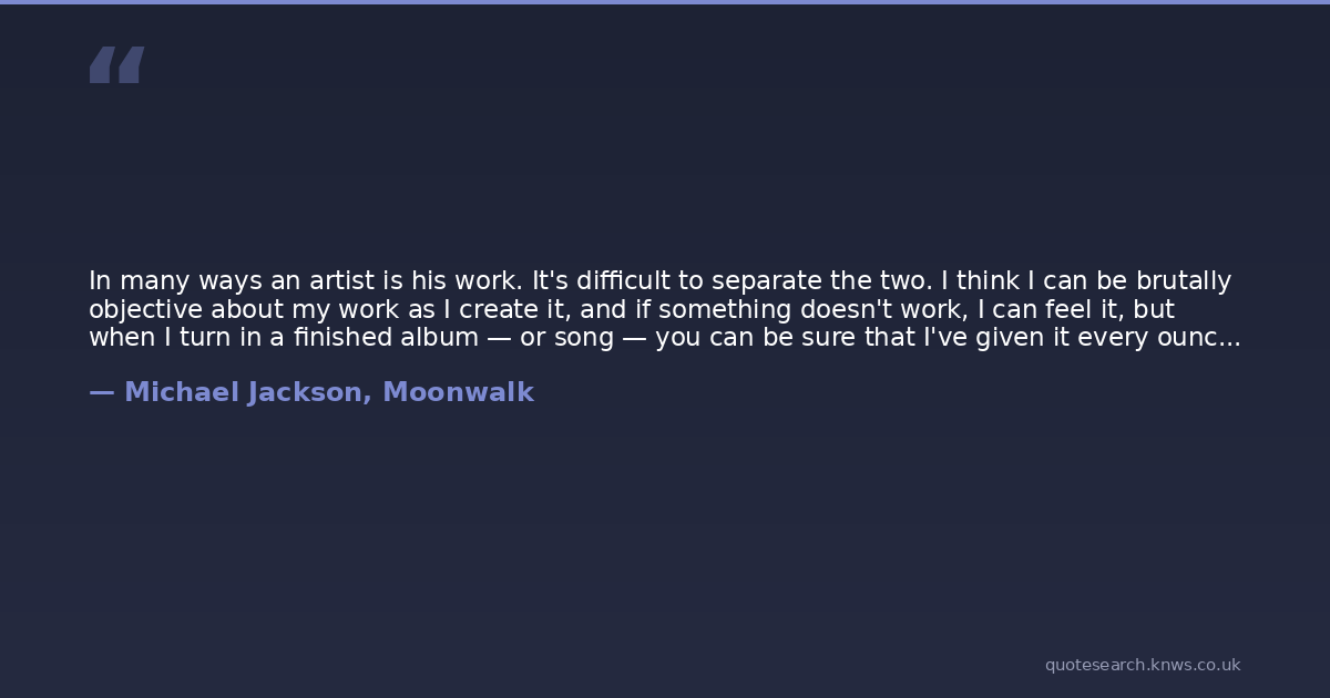 In many ways an artist is his work. It's difficult to separate the two. I think I can be brutally objective about my work as I create it, and if something doesn't work, I can feel it, but when I turn in a finished album — or song — you can be sure that I've given it every ounce of energy and God-given talent that I have.