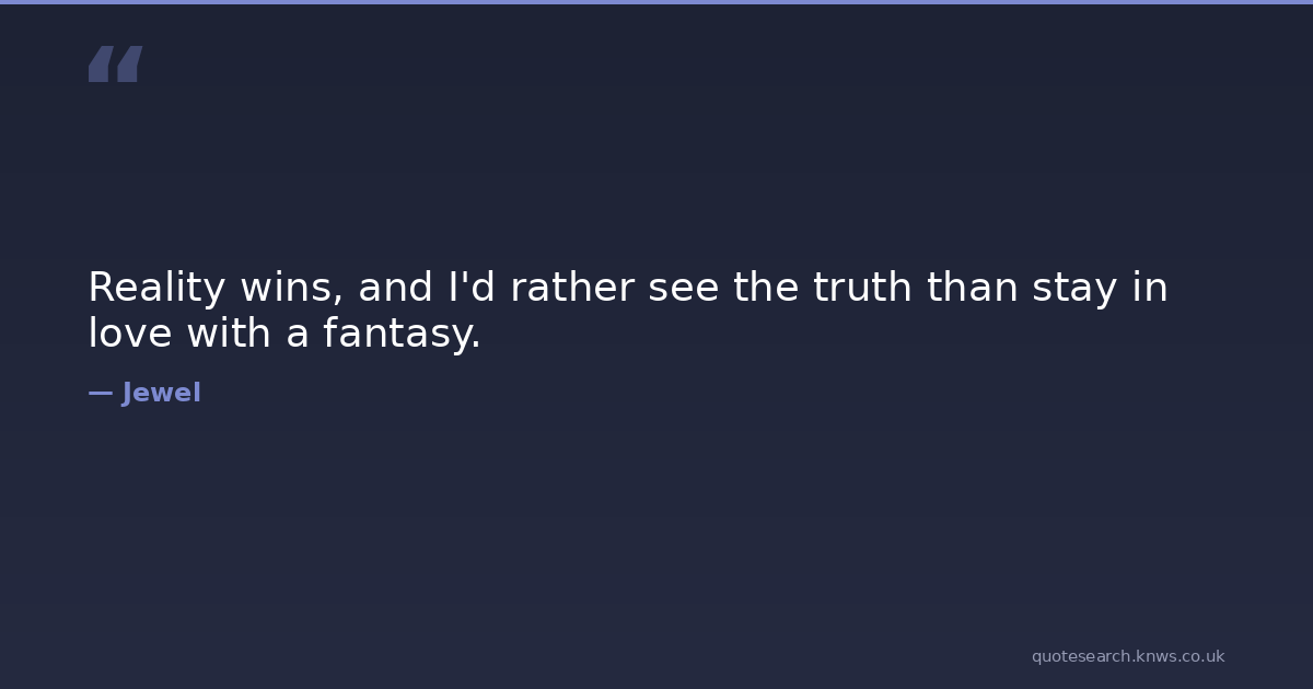 Reality wins, and I'd rather see the truth than stay in love with a fantasy. fantasy hard-truths life life-lessons real-life reality truth Download Image Share on X Share on Facebook Copy Link
