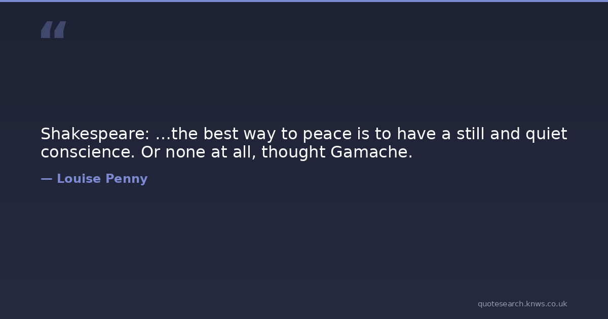 Shakespeare: …the best way to peace is to have a still and quiet conscience. Or none at all, thought Gamache.
