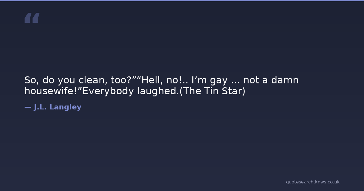 So, do you clean, too?”“Hell, no!.. I’m gay ... not a damn housewife!”Everybody laughed.(The Tin Star)