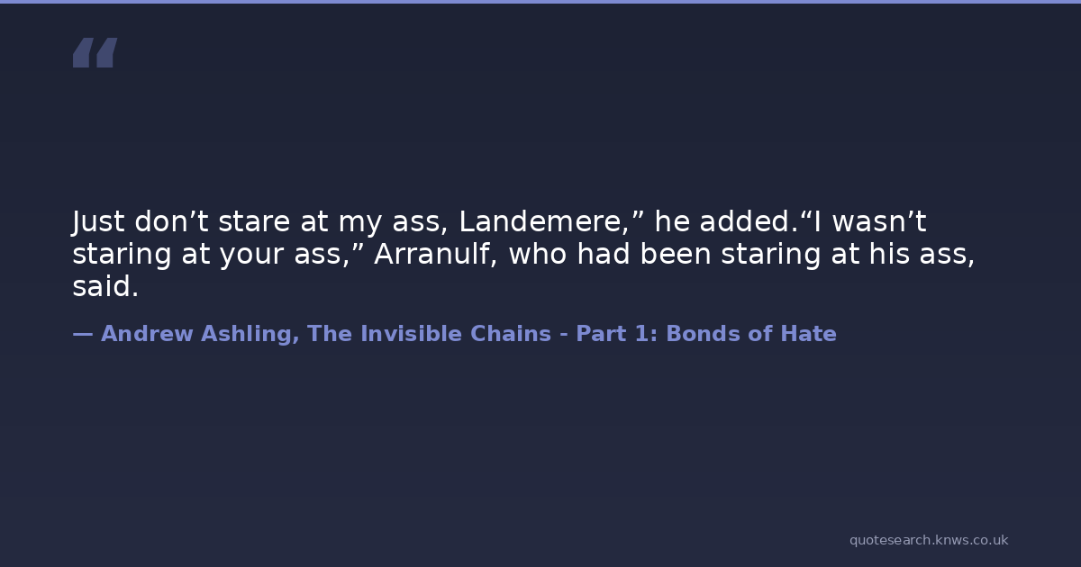 Just don’t stare at my ass, Landemere,” he added.“I wasn’t staring at your ass,” Arranulf, who had been staring at his ass, said.