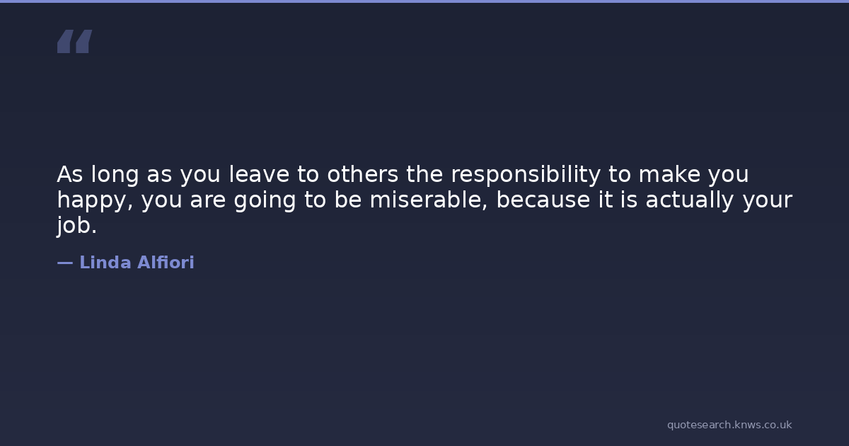 As long as you leave to others the responsibility to make you happy, you are going to be miserable, because it is actually your job.