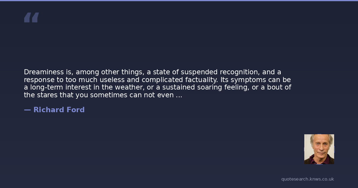 Richard Ford was American author. Richard Ford is an American novelist and short story author and writer of a series of novels featuring the character Frank Bascombe. Read more on Wikipedia →
