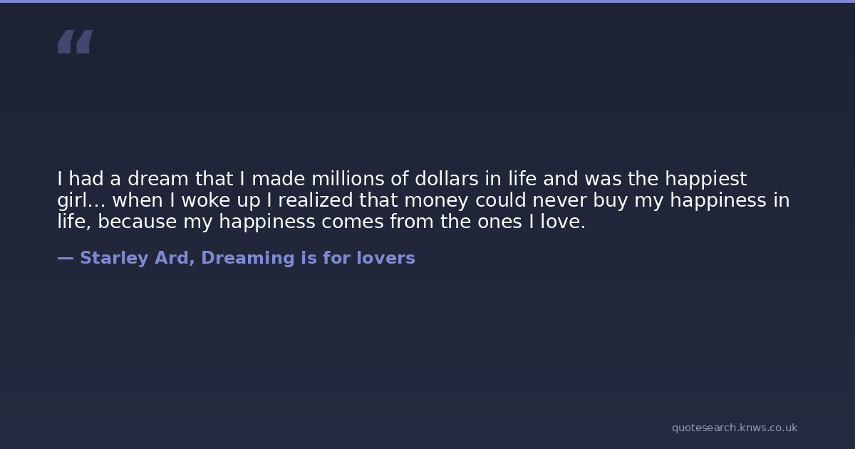 I had a dream that I made millions of dollars in life and was the happiest girl… when I woke up I realized that money could never buy my happiness in life, because my happiness comes from the ones I love.
