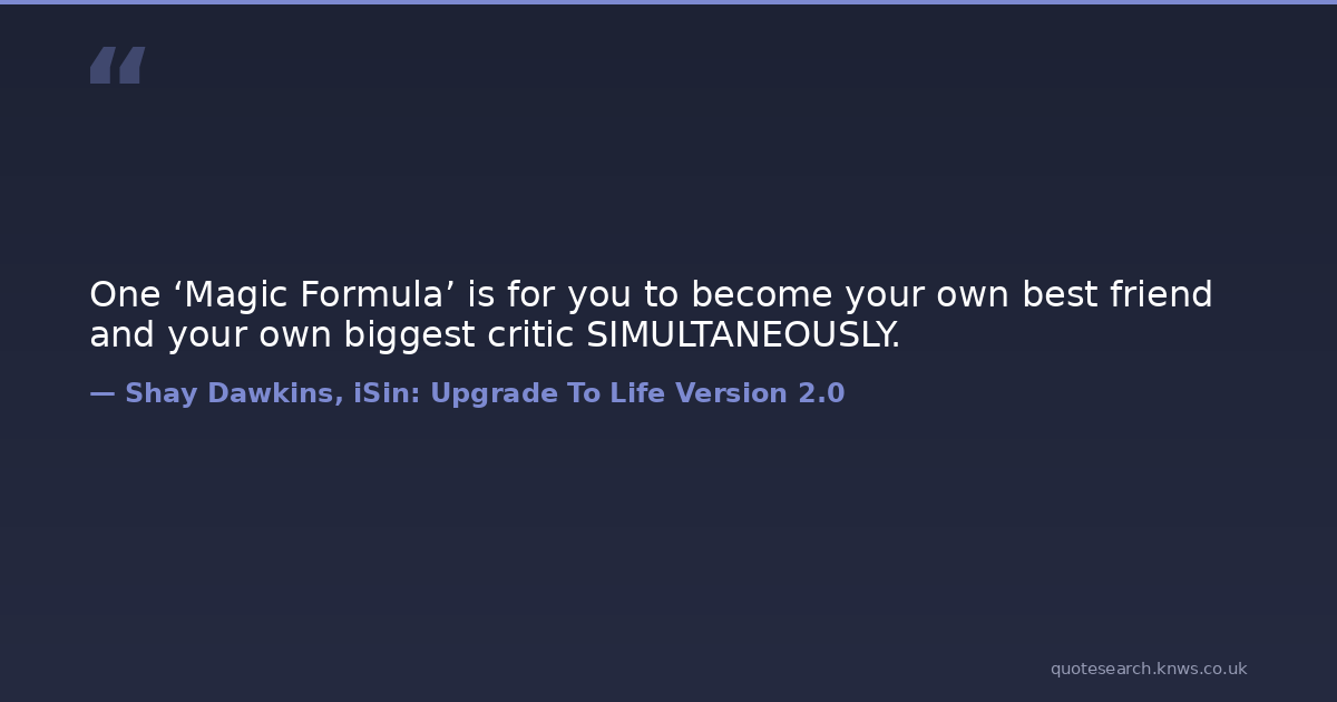 One ‘Magic Formula’ is for you to become your own best friend and your own biggest critic SIMULTANEOUSLY.