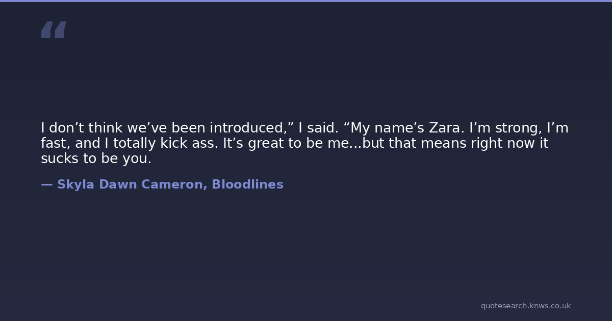 I don’t think we’ve been introduced,” I said. “My name’s Zara. I’m strong, I’m fast, and I totally kick ass. It’s great to be me...but that means right now it sucks to be you.