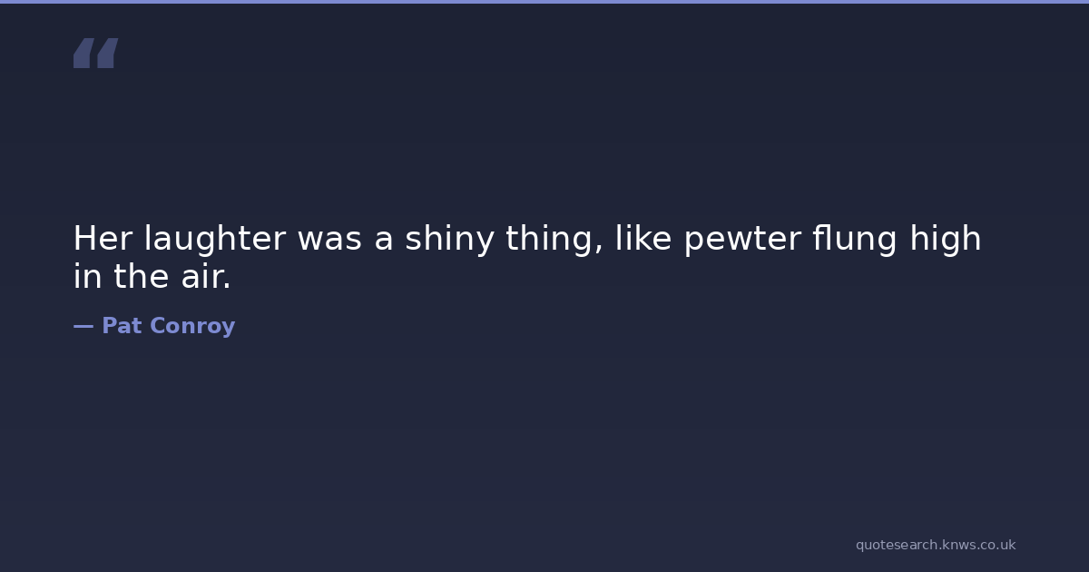 Her laughter was a shiny thing, like pewter flung high in the air.