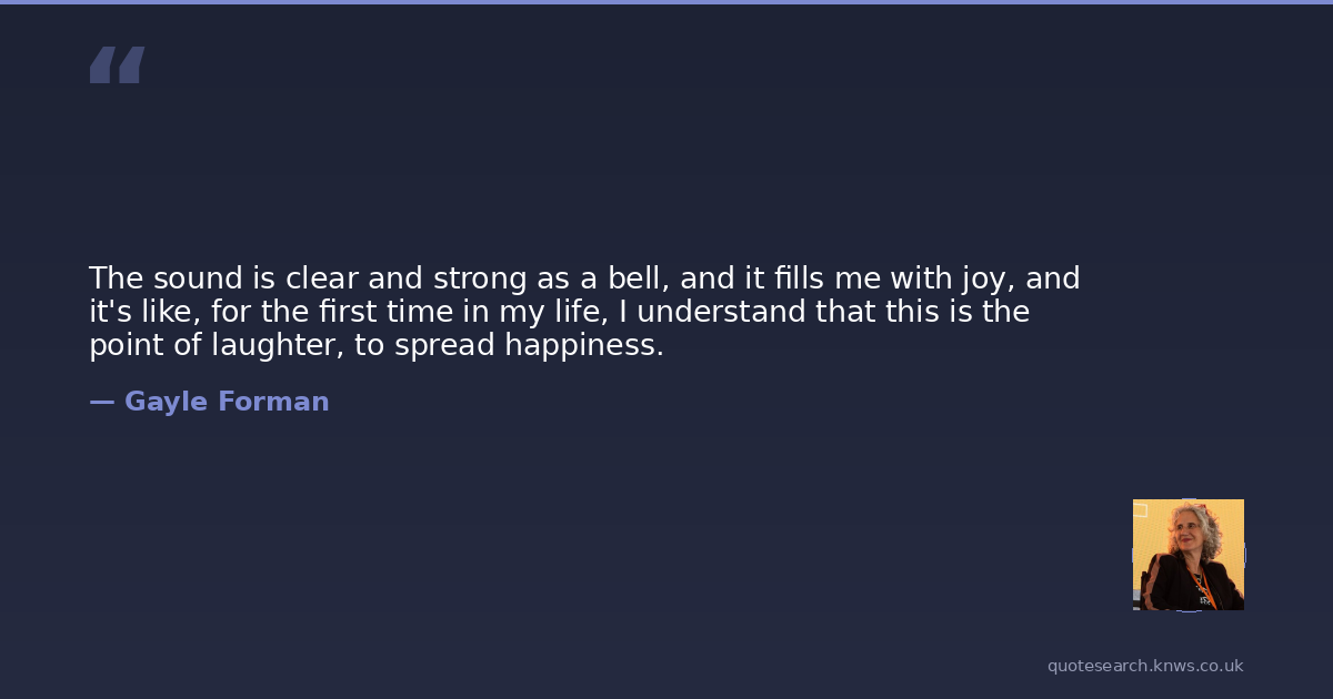 The sound is clear and strong as a bell, and it fills me with joy, and it's like, for the first time in my life, I understand that this is the point of laughter, to spread happiness.