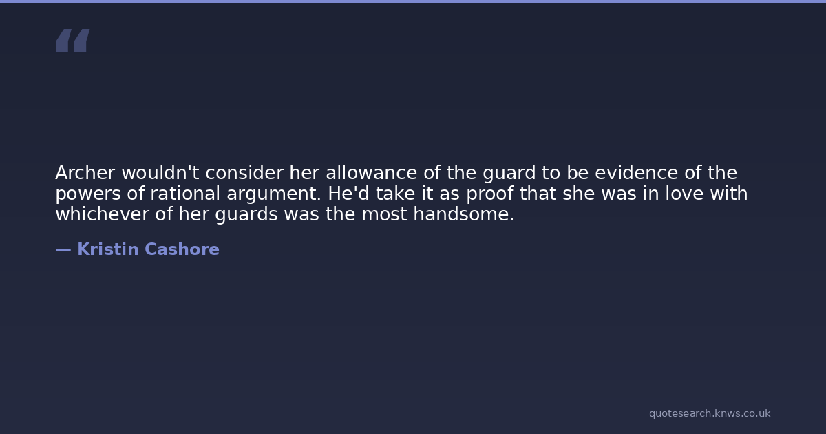 Archer wouldn't consider her allowance of the guard to be evidence of the powers of rational argument. He'd take it as proof that she was in love with whichever of her guards was the most handsome.