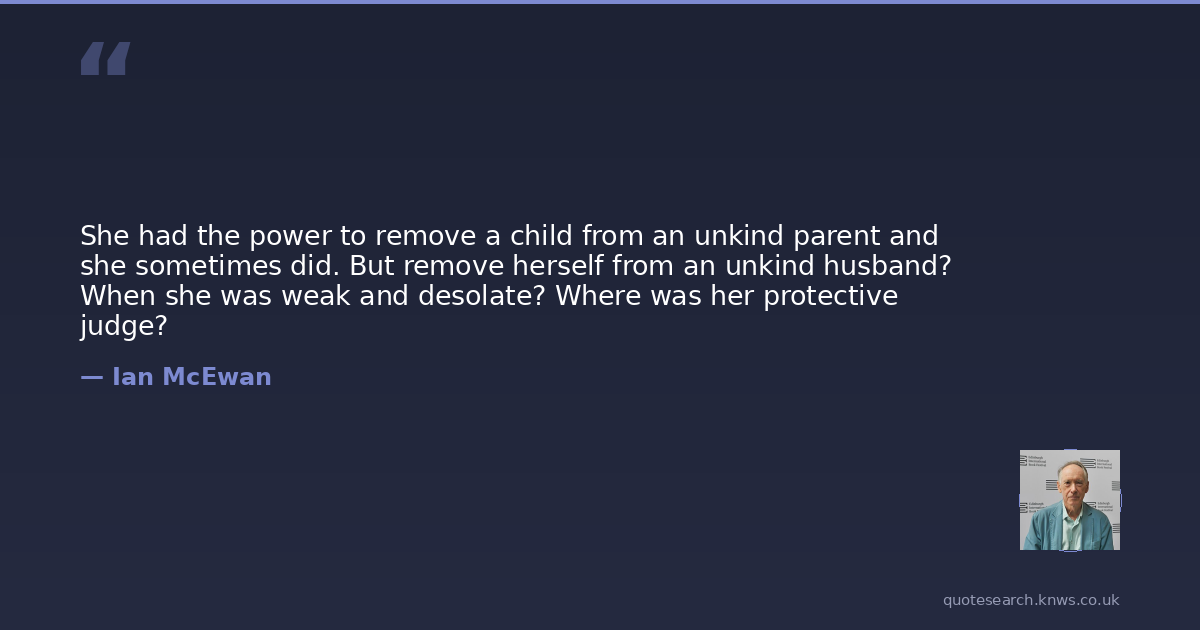 She had the power to remove a child from an unkind parent and she sometimes did. But remove herself from an unkind husband? When she was weak and desolate? Where was her protective judge?
