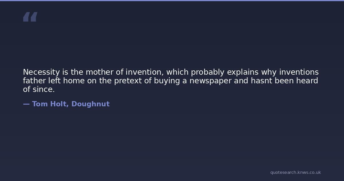 Necessity is the mother of invention, which probably explains why inventions father left home on the pretext of buying a newspaper and hasnt been heard of since.