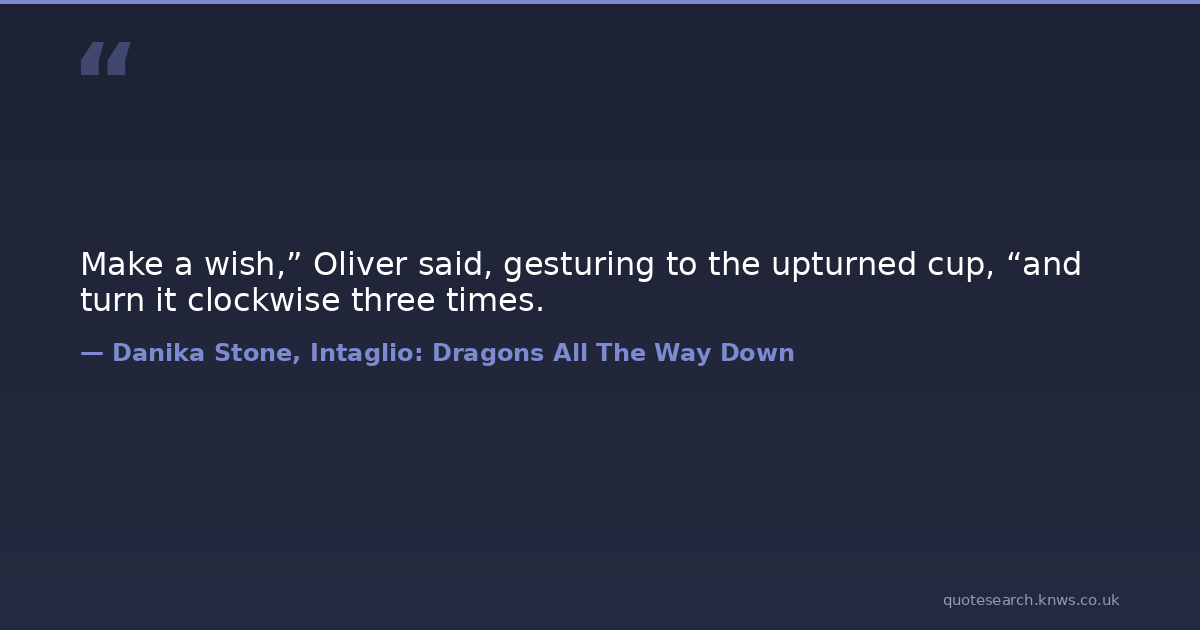 Make a wish,” Oliver said, gesturing to the upturned cup, “and turn it clockwise three times.