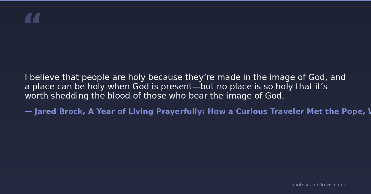 I believe that people are holy because they’re made in the image of God, and a place can be holy when God is present—but no place is so holy that it’s worth shedding the blood of those who bear the image of God.
