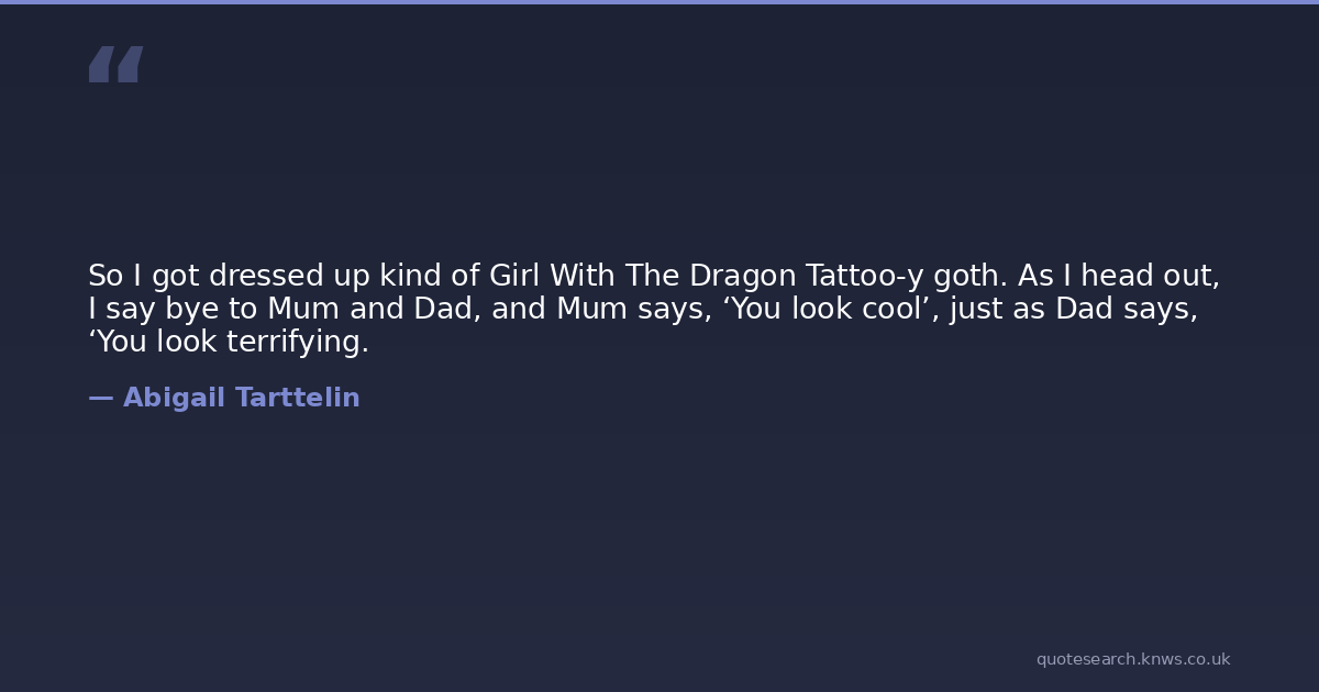 So I got dressed up kind of Girl With The Dragon Tattoo-y goth. As I head out, I say bye to Mum and Dad, and Mum says, ‘You look cool’, just as Dad says, ‘You look terrifying.