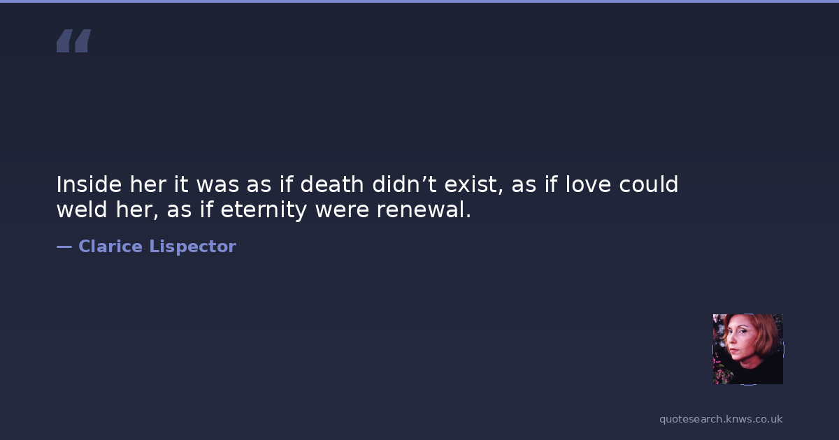 Inside her it was as if death didn’t exist, as if love could weld her, as if eternity were renewal.