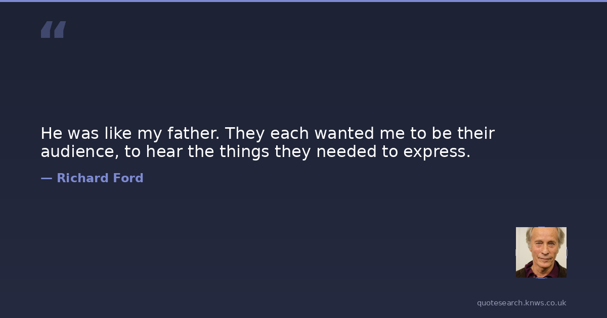 He was like my father. They each wanted me to be their audience, to hear the things they needed to express.