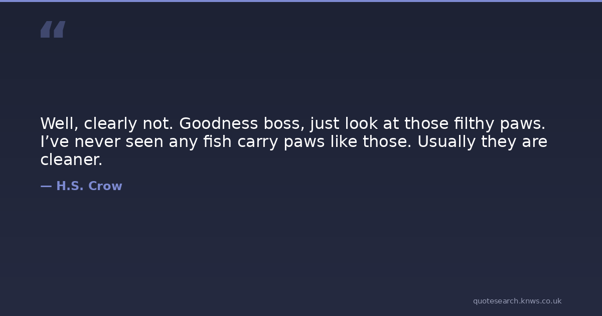 Well, clearly not. Goodness boss, just look at those filthy paws. I’ve never seen any fish carry paws like those. Usually they are cleaner.