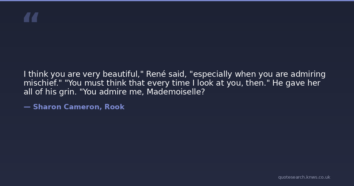 I think you are very beautiful," René said, "especially when you are admiring mischief." "You must think that every time I look at you, then." He gave her all of his grin. "You admire me, Mademoiselle?