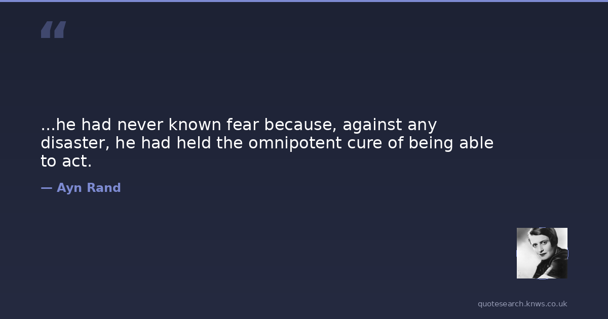 ...he had never known fear because, against any disaster, he had held the omnipotent cure of being able to act.