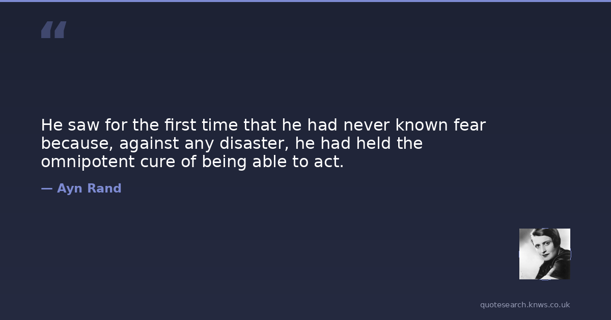 He saw for the first time that he had never known fear because, against any disaster, he had held the omnipotent cure of being able to act.