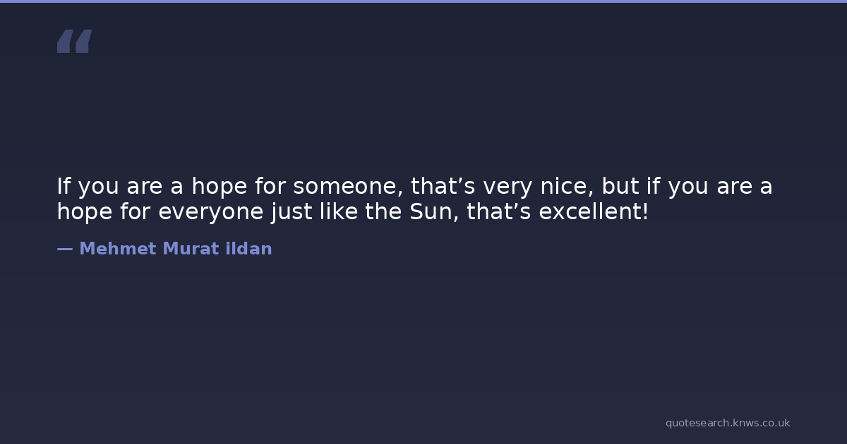 If you are a hope for someone, that’s very nice, but if you are a hope for everyone just like the Sun, that’s excellent!