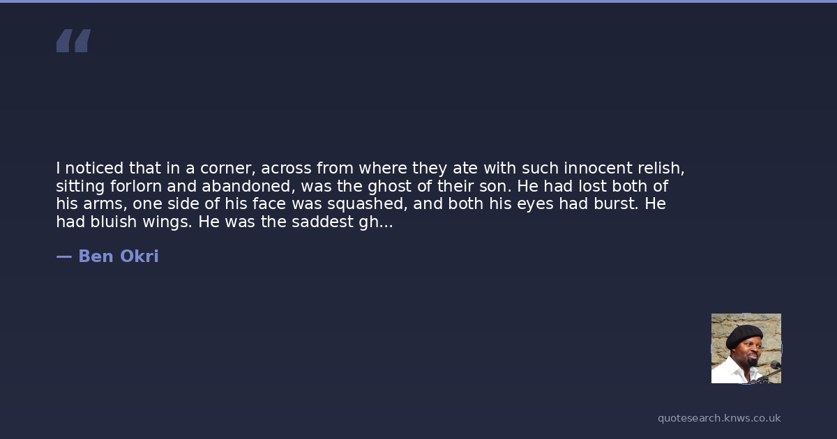 Ben Okri was a contemporary Nigerian writer. Sir Ben Golden Emuobowho Okri is a Nigerian-born British poet and novelist. Considered one of the foremost African authors in the postmodern and post-colonial traditions, Okri has been compared to authors such as Salman Rushdie and Gabriel García Márquez. Read more on Wikipedia →