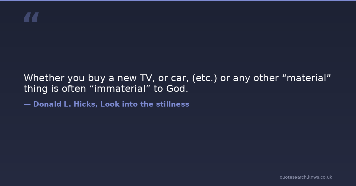 Whether you buy a new TV, or car, (etc.) or any other “material” thing is often “immaterial” to God.