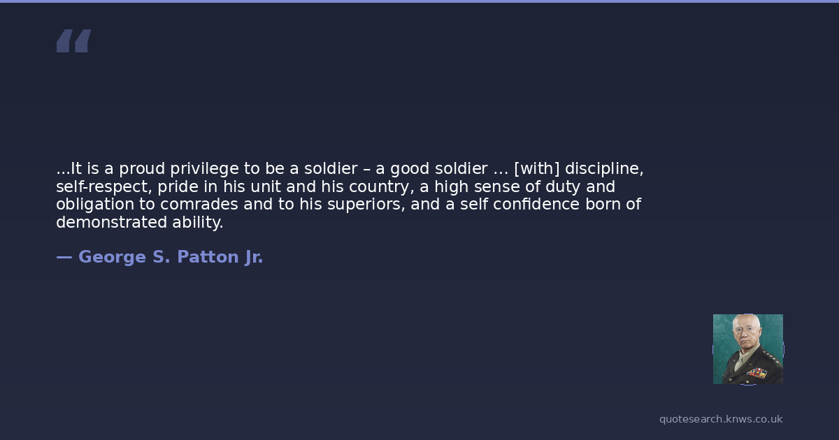 ...It is a proud privilege to be a soldier – a good soldier … [with] discipline, self-respect, pride in his unit and his country, a high sense of duty and obligation to comrades and to his superiors, and a self confidence born of demonstrated ability.