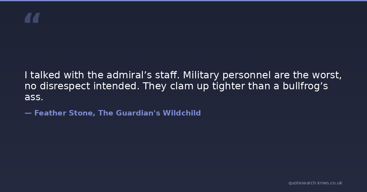 I talked with the admiral’s staff. Military personnel are the worst, no disrespect intended. They clam up tighter than a bullfrog’s ass.