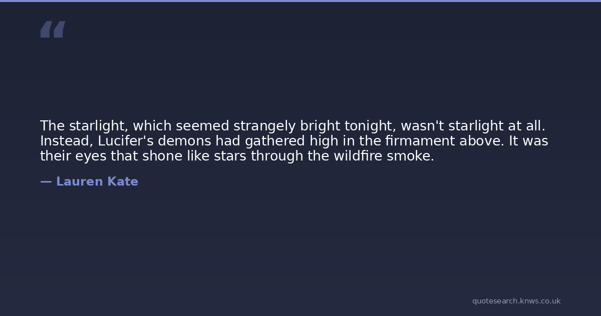 The starlight, which seemed strangely bright tonight, wasn't starlight at all. Instead, Lucifer's demons had gathered high in the firmament above. It was their eyes that shone like stars through the wildfire smoke.
