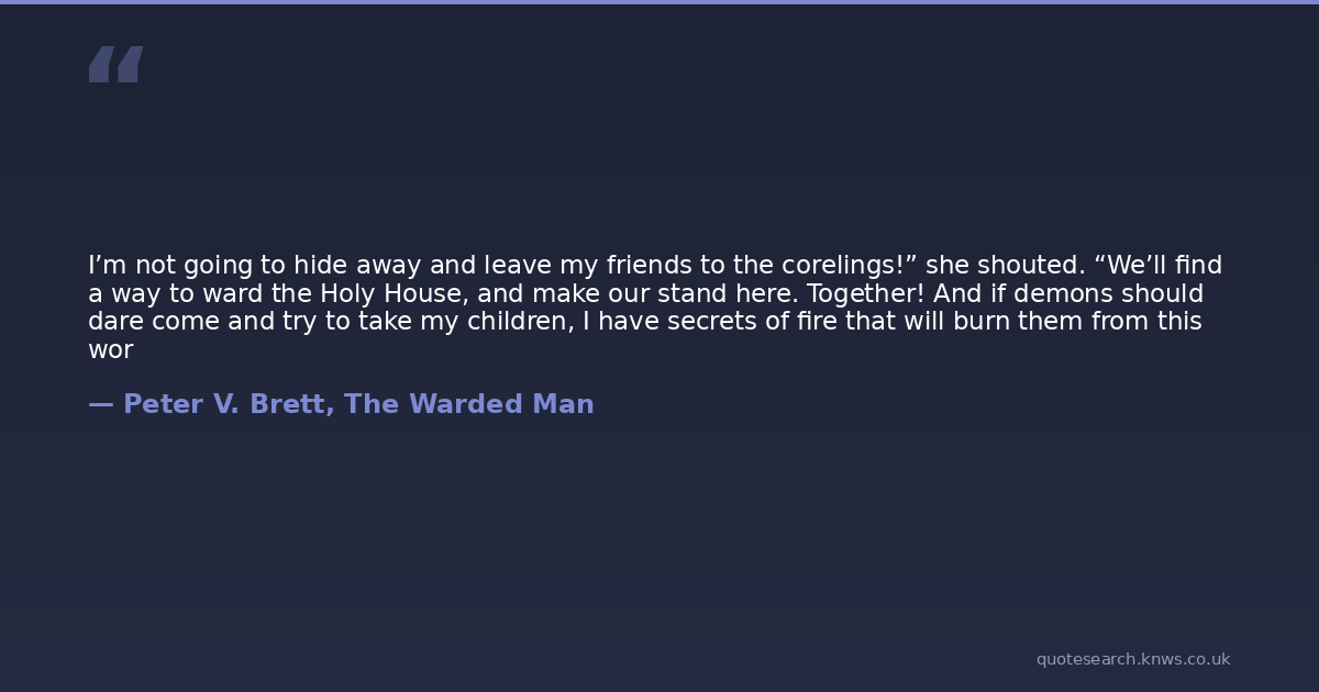 I’m not going to hide away and leave my friends to the corelings!” she shouted. “We’ll find a way to ward the Holy House, and make our stand here. Together! And if demons should dare come and try to take my children, I have secrets of fire that will burn them from this wor