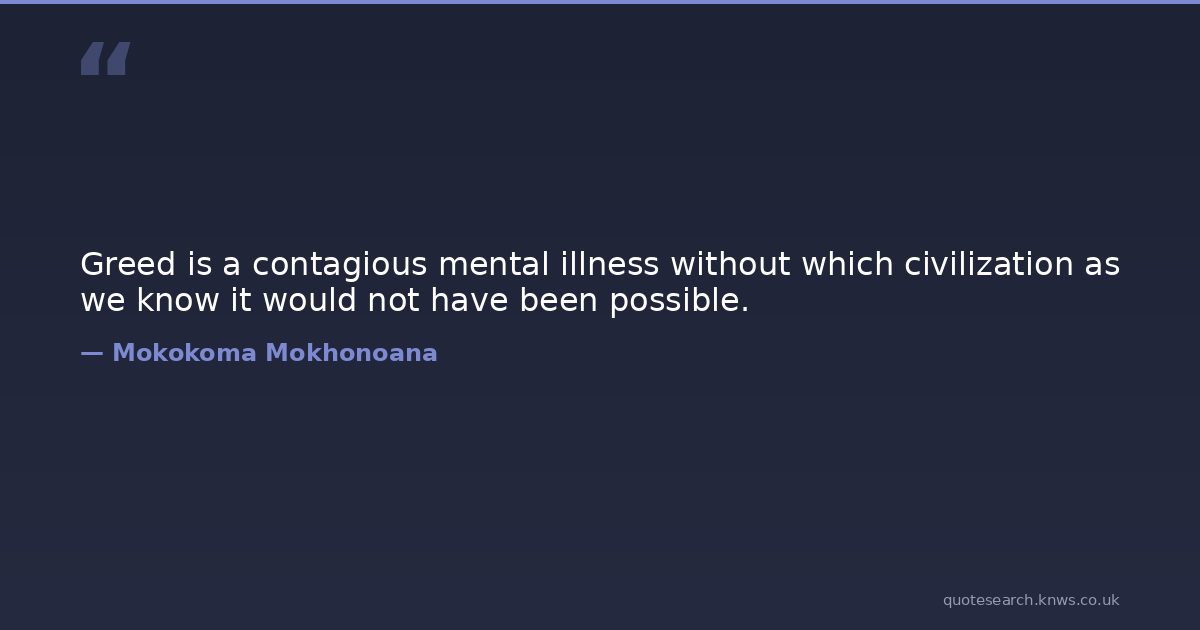 Greed is a contagious mental illness without which civilization as we know it would not have been possible.