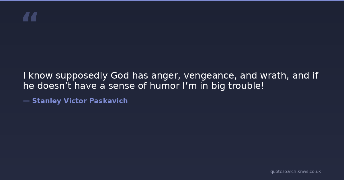 I know supposedly God has anger, vengeance, and wrath, and if he doesn’t have a sense of humor I’m in big trouble!