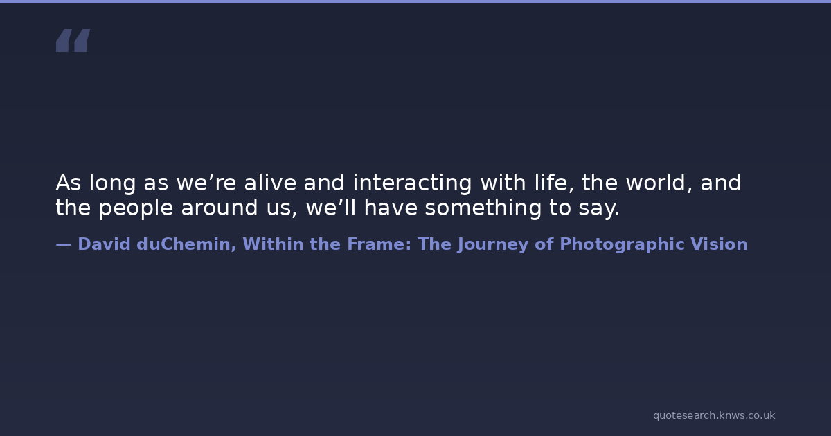 As long as we’re alive and interacting with life, the world, and the people around us, we’ll have something to say.