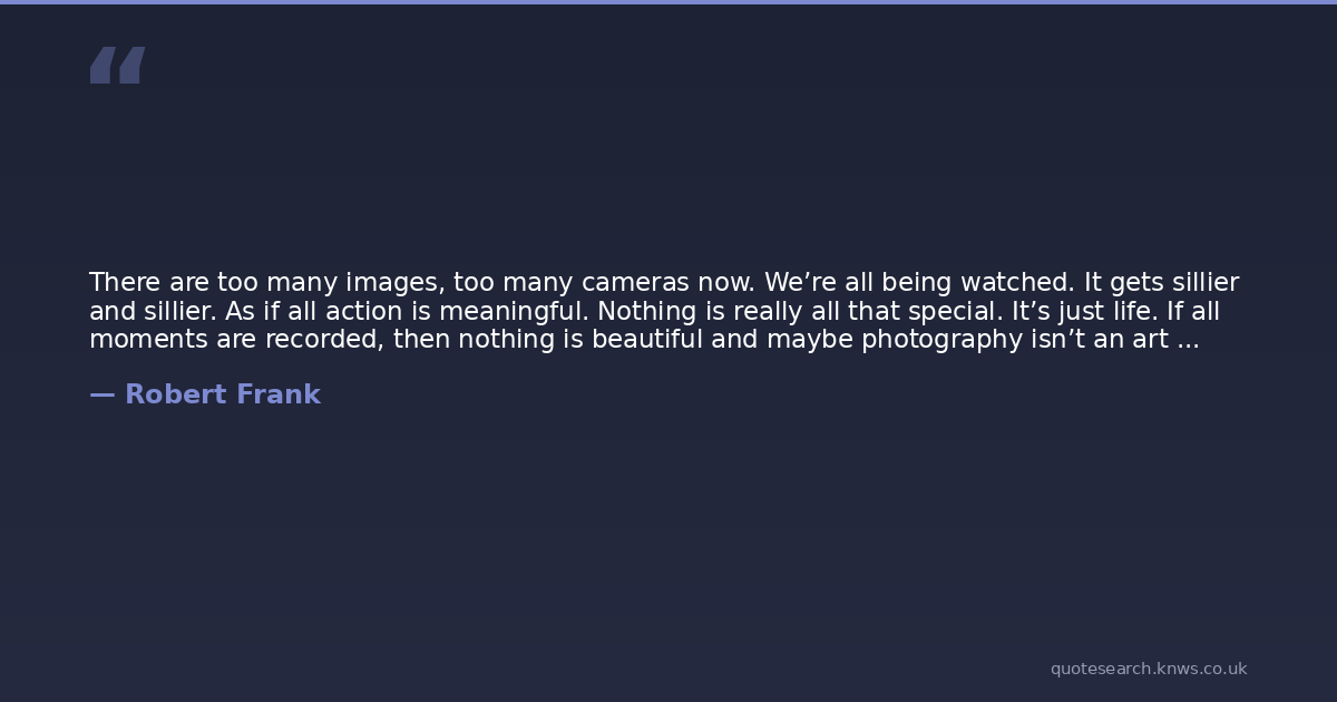 There are too many images, too many cameras now. We’re all being watched. It gets sillier and sillier. As if all action is meaningful. Nothing is really all that special. It’s just life. If all moments are recorded, then nothing is beautiful and maybe photography isn’t an art anymore. Maybe it never was